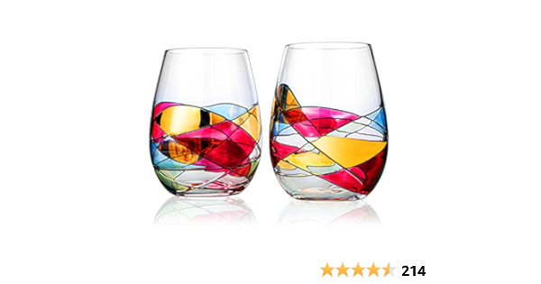 Artisan Hand Painted Stemless Renaissance Romantic Stained Glass Windows Wine Glasses Birthday Housewarming Extra Large Goblets Stemless Amazon De Home Kitchen